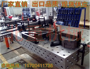所有模塊加工精度均較高,工作平臺(tái)上任意兩個(gè)孔的公差在±0.1mm以內(nèi),完全可以滿足焊接加工的需要。在裝配或焊接過程中,使用定位塊、連接塊、夾緊器和支撐塊,能夠?qū)ぜ_定位,需要焊接的工件可以被穩(wěn)定地固定在各個(gè)定位點(diǎn)或定位面上。如果工件本身的幾何尺寸不準(zhǔn)確,也可以很快被檢測(cè)出來,在初加工工序中便被消除。