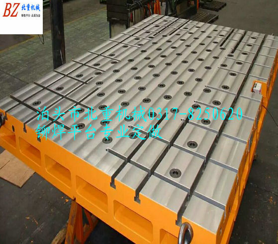 鑄鐵鉚焊平臺是鉚焊工作的基礎工作臺.北重T型槽鉚焊平臺為了滿足鉚焊工藝需求,鑄鐵工作臺面加工縱向或橫向T型槽,適當位置加工圓孔,大型鉚焊平臺采用HT200-300灰鐵鑄造而成.鉚焊平板臺面經過人工刮研處理,在鉚焊工作中其作用不容小視.使用鉚焊平臺運用到工作中,可提高工作效率增強產品質量.