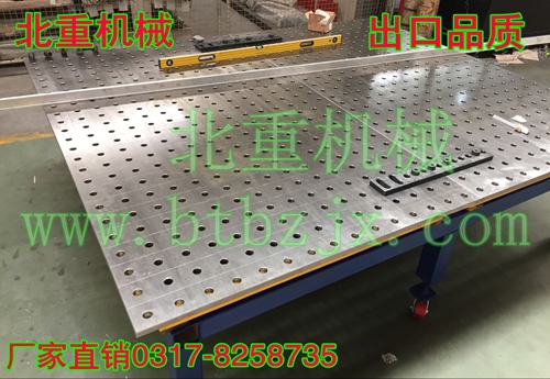 北重機械制造柔性焊接平臺的承載能力高,鋼性穩(wěn)定,它的五個面均加工有規(guī)則的孔,并刻有網(wǎng)線。焊接平臺可方便地延伸和擴展,組合。