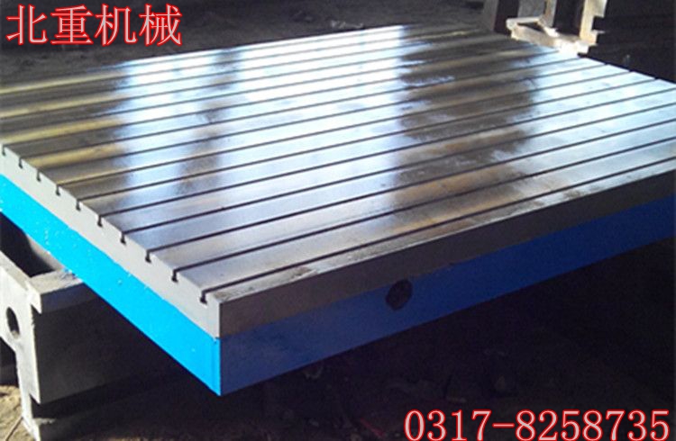 T型槽平臺使用高強度鑄鐵HT200-300 工作面硬度為HB170-240,經過兩次人工處理(人工退火600度-700度和自然時效2-3年),T型槽平臺的工作面采用刮削工藝,T型槽平臺工作面上可加工V形、T形、U形槽和圓孔、長孔等,可用來固定動力機械設備。使用該產品的精度穩定,耐磨性能好。T型槽平臺工作面加工有T型槽,主要用來固定工件,是鉗工工人用來調試設備,裝配設備,維修設備的基礎工作平面